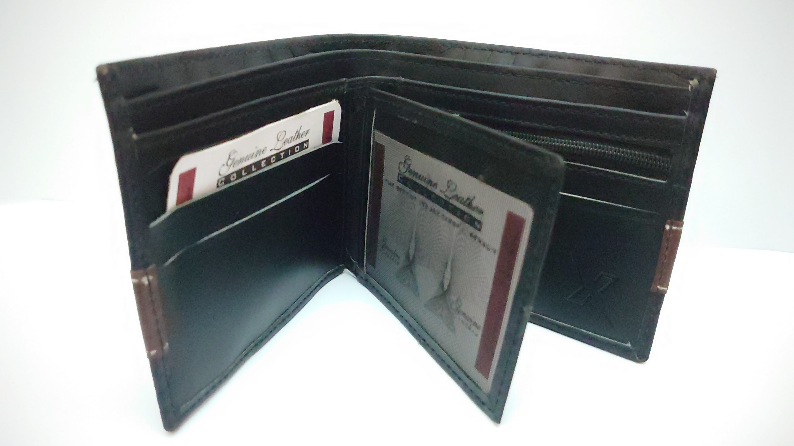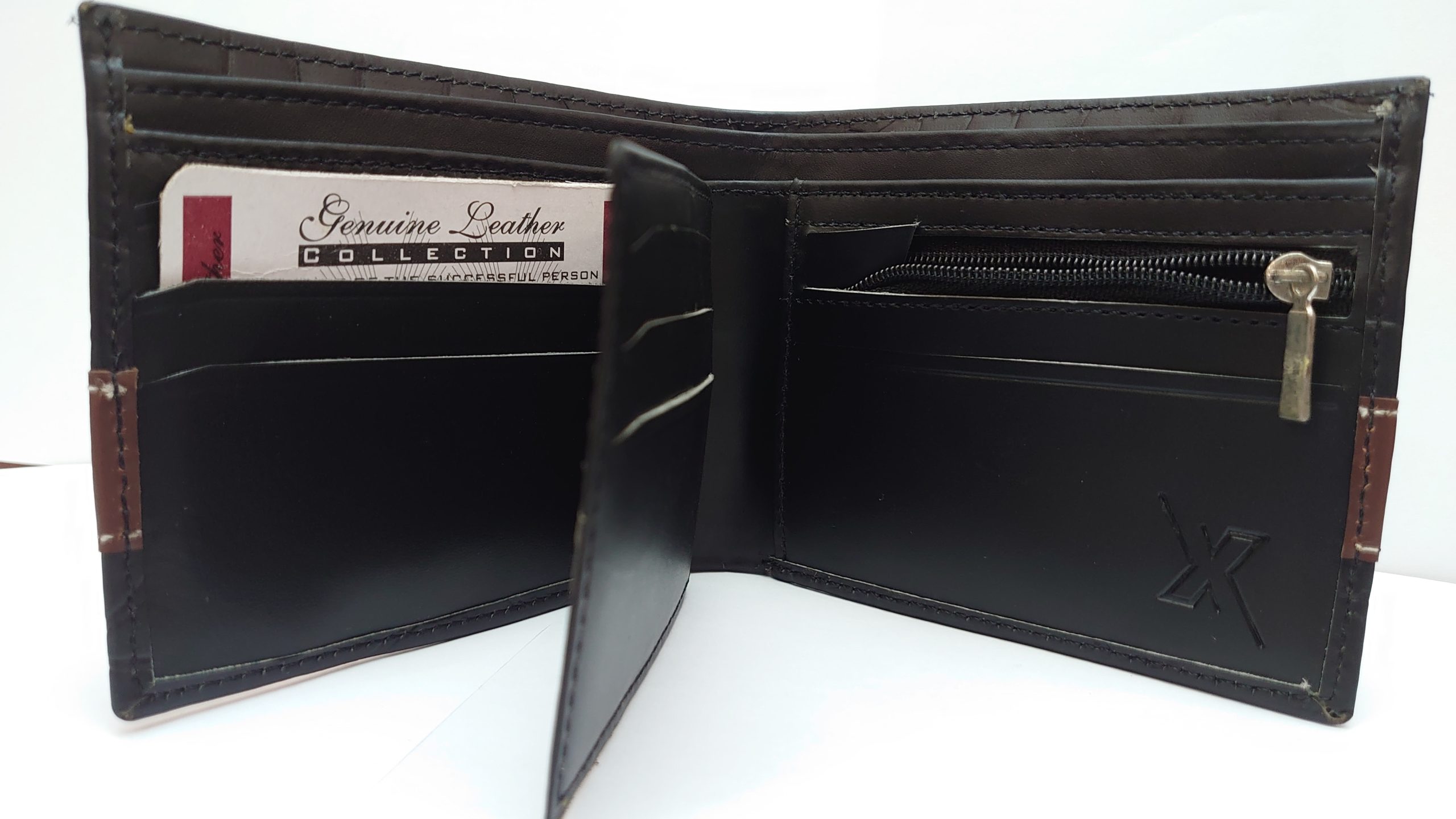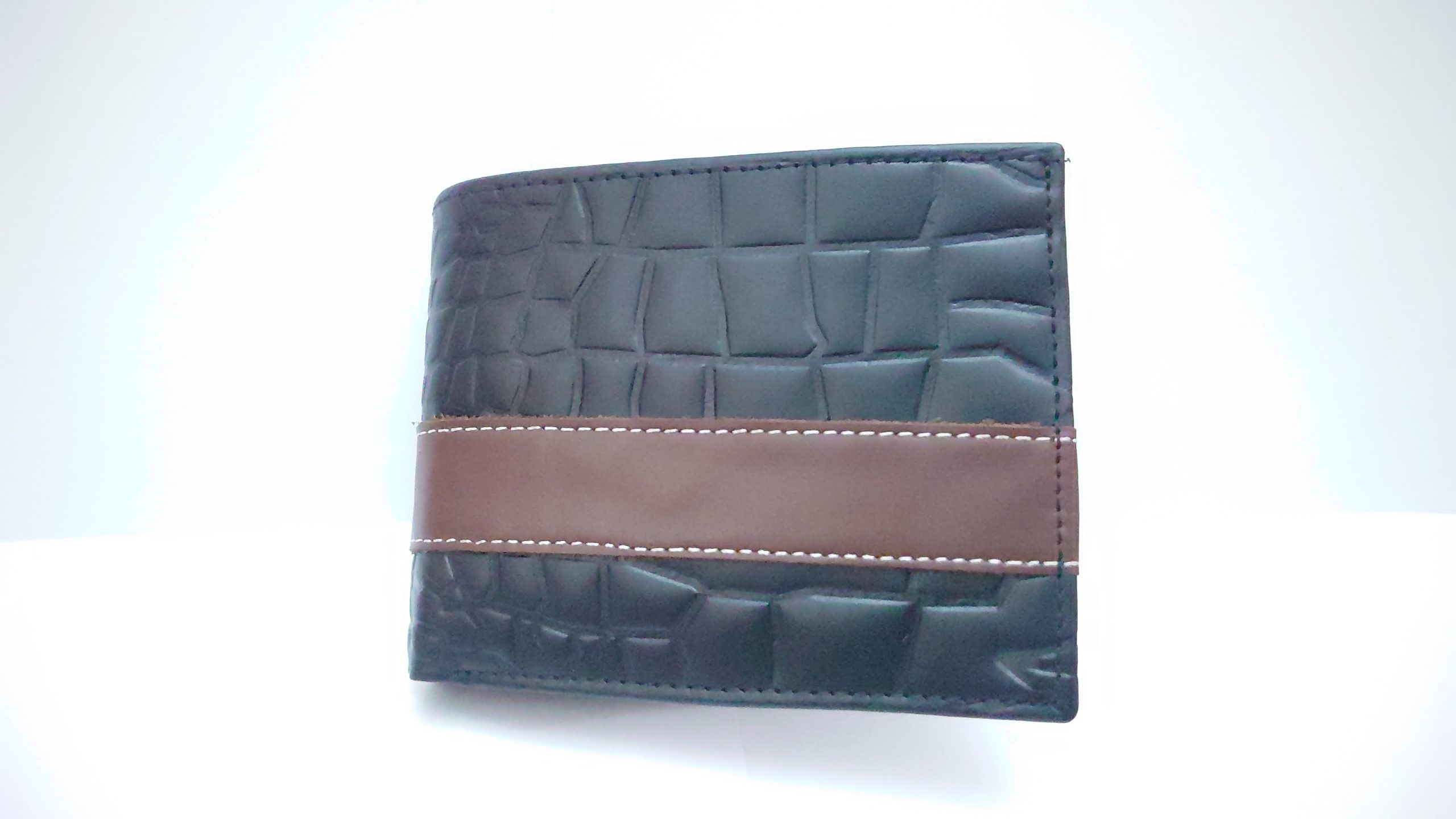 Men’s One-Fold Black Croc-Texture Wallet with Accent Strip ( guaranteed pure cow leather)